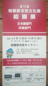 会期 9月19日〜9月23日 会場 相模原市民ギャラリー